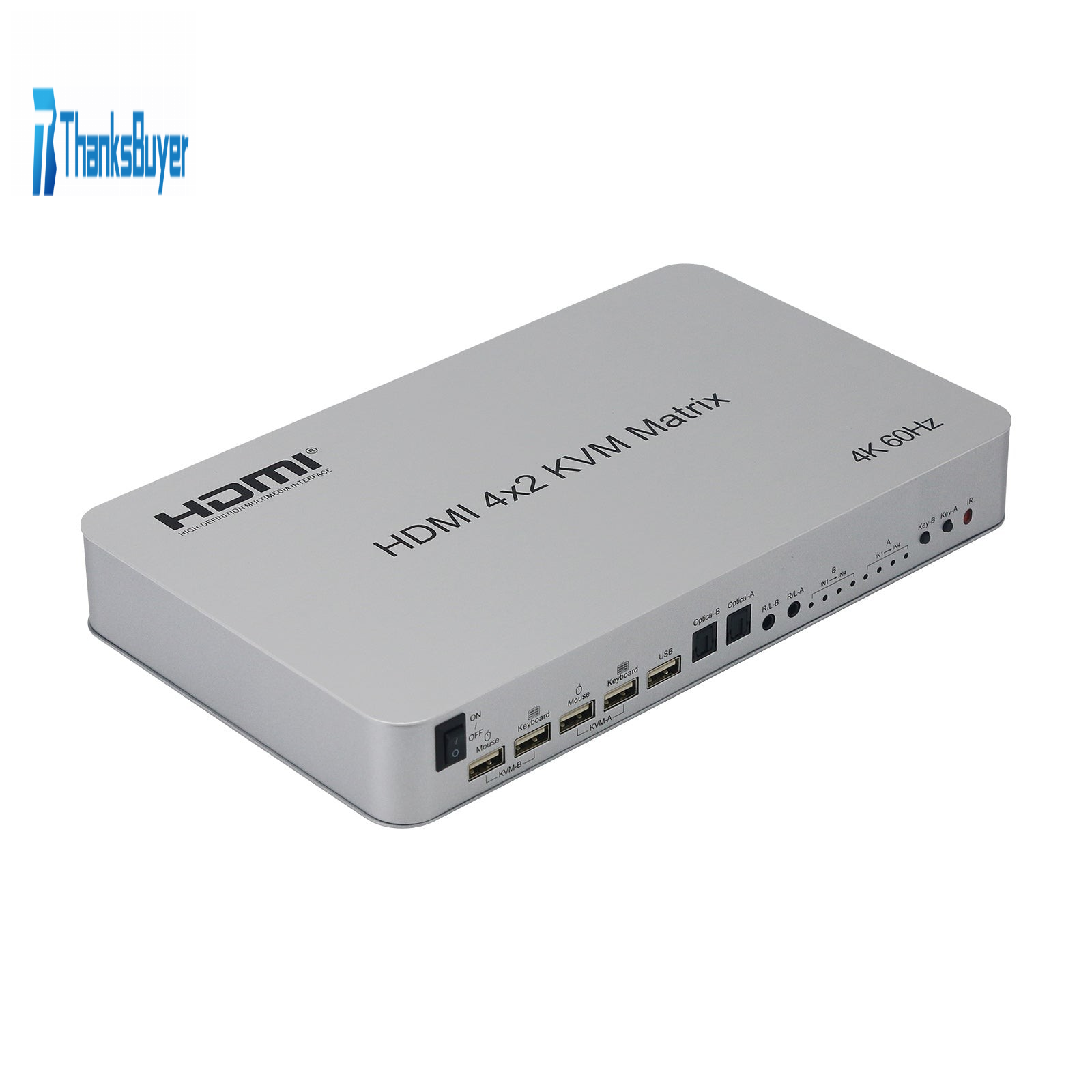 4K 60Hz HDMI Matrix Switch HDMI 4x2 KVM Matrix Supports Keyboard Mouse Speakers Headphones PC