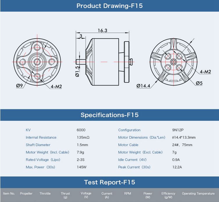 4pcs F15 6000KV 2-3S RC Brushless Motor Micro Tinywhoop Drone FPV Racing