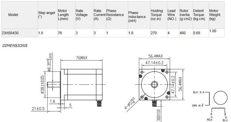 4pcs Nema 23 Stepper Motor 23HS8430 270oz.in 1.9NM Single Shaft 76mm 3A CNC Router Stepper Motor Kit