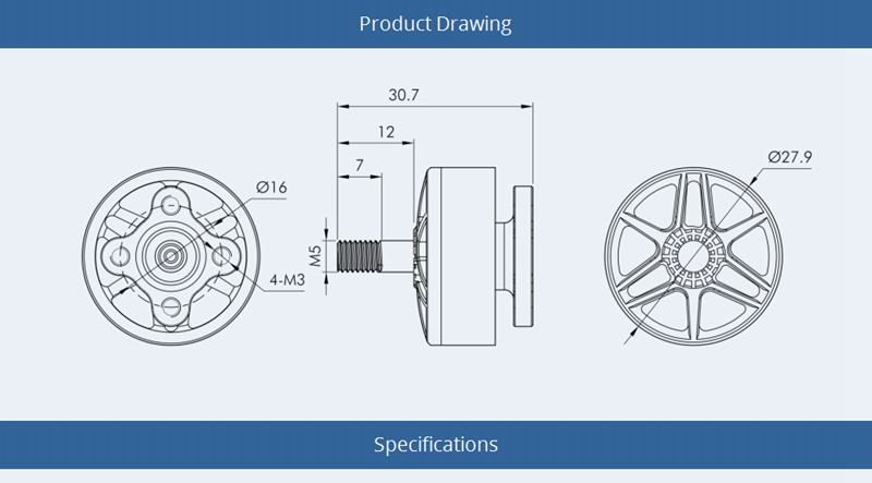 - Thoughtful design, guarding your flight. 12mm-length shaft matching with well-designed nut, not just reduce the motor weight, but also effectively protect shaft thread. Then you can fly freely. PS: Well-matched with most regular-size FPV quad propeller in the market.