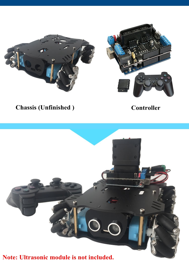 4WD Smart Car Chassis Mecanum Wheel Chassis Unfinished + Wireless Controller (No Ultrasonic Module)