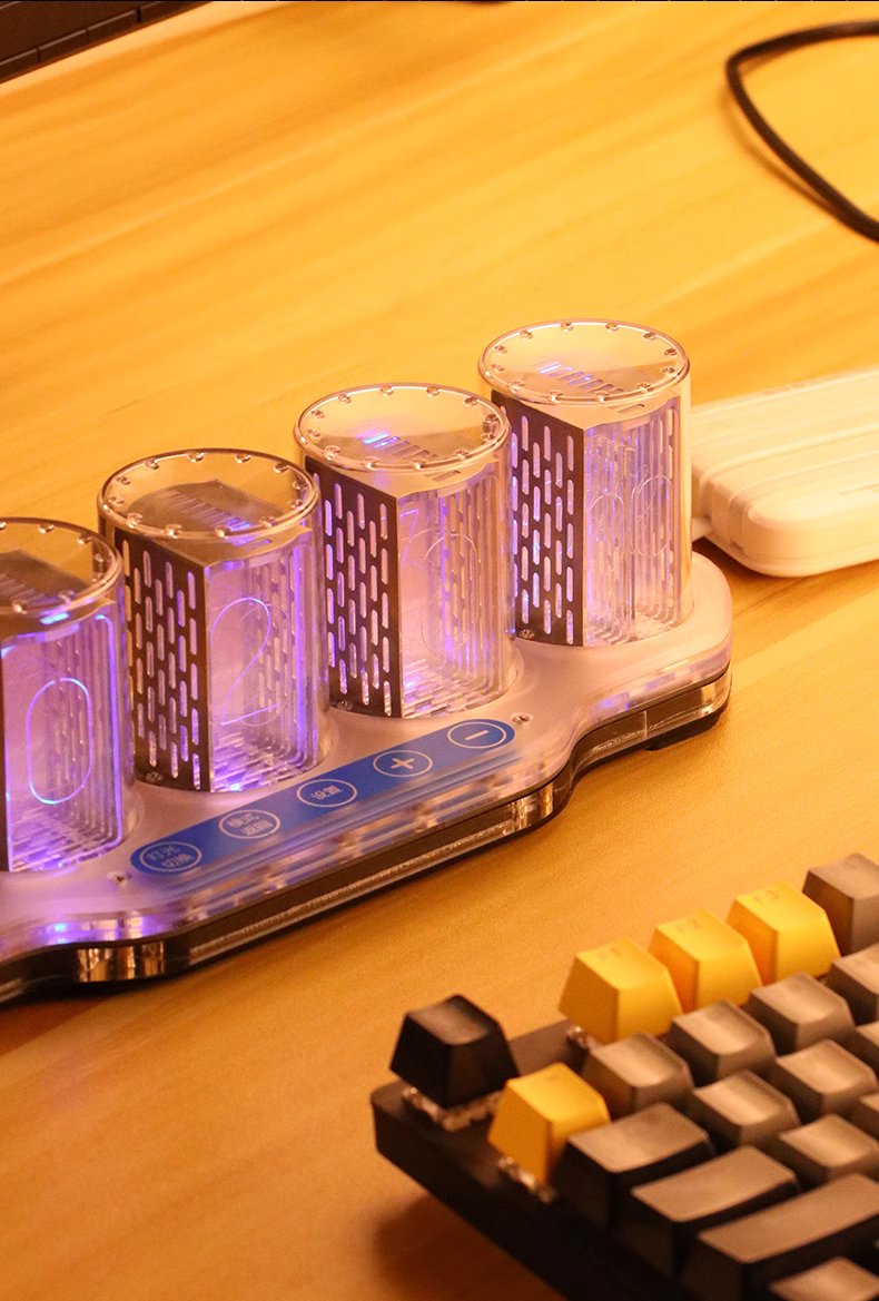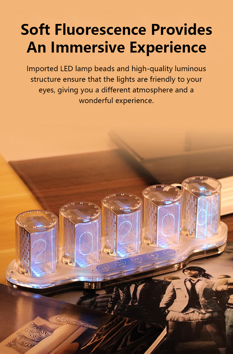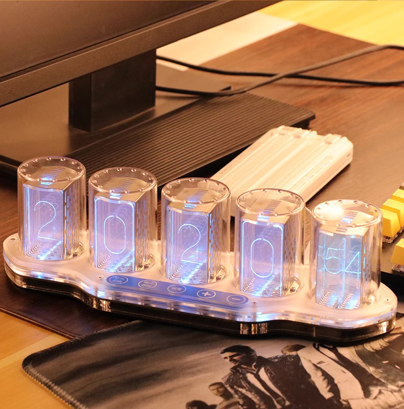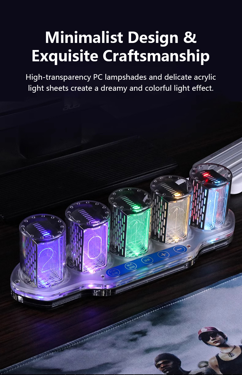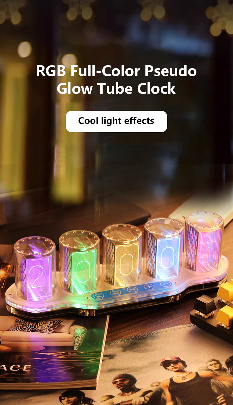 5-Digit RGB Pseudo Glow Tube Clock Finished Digital Clock Desktop Ornament Gift for Friends & Family