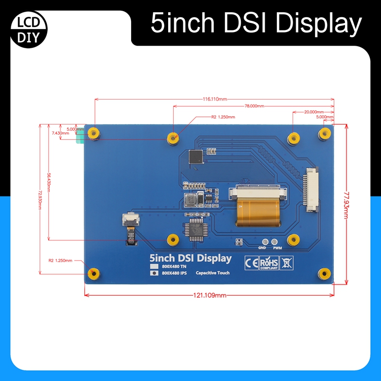 5 Inch DSI Display 800x480 IPS Display Capacitive Touch Drive-Free For Raspberry Pi MIPI DSI Port