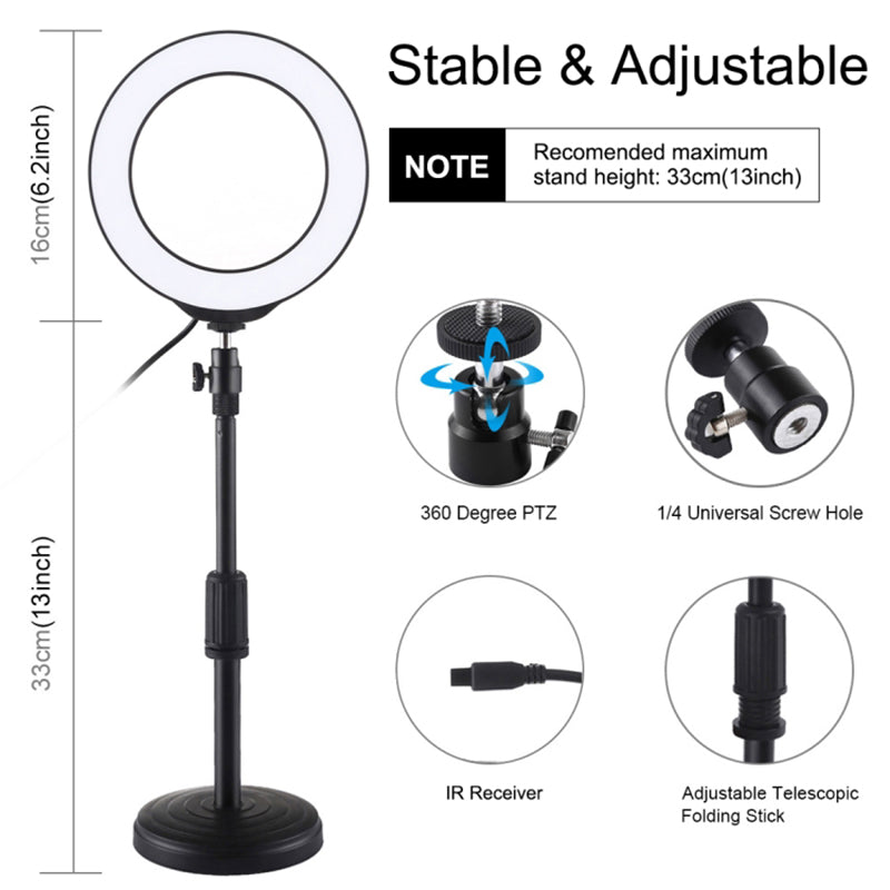 2. Adjustable table top mini desktop mount for LED Ring Light, Desk Makeup Light.