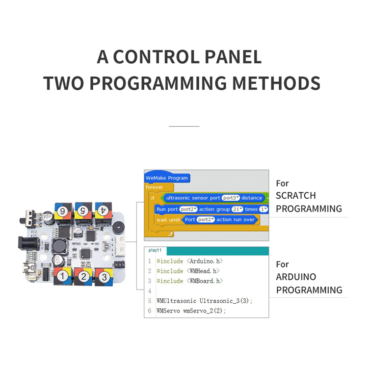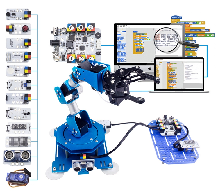 - Output: Digital Tube Module, LED Dot Matrix Module, RGB LED Module, Robotic Arm