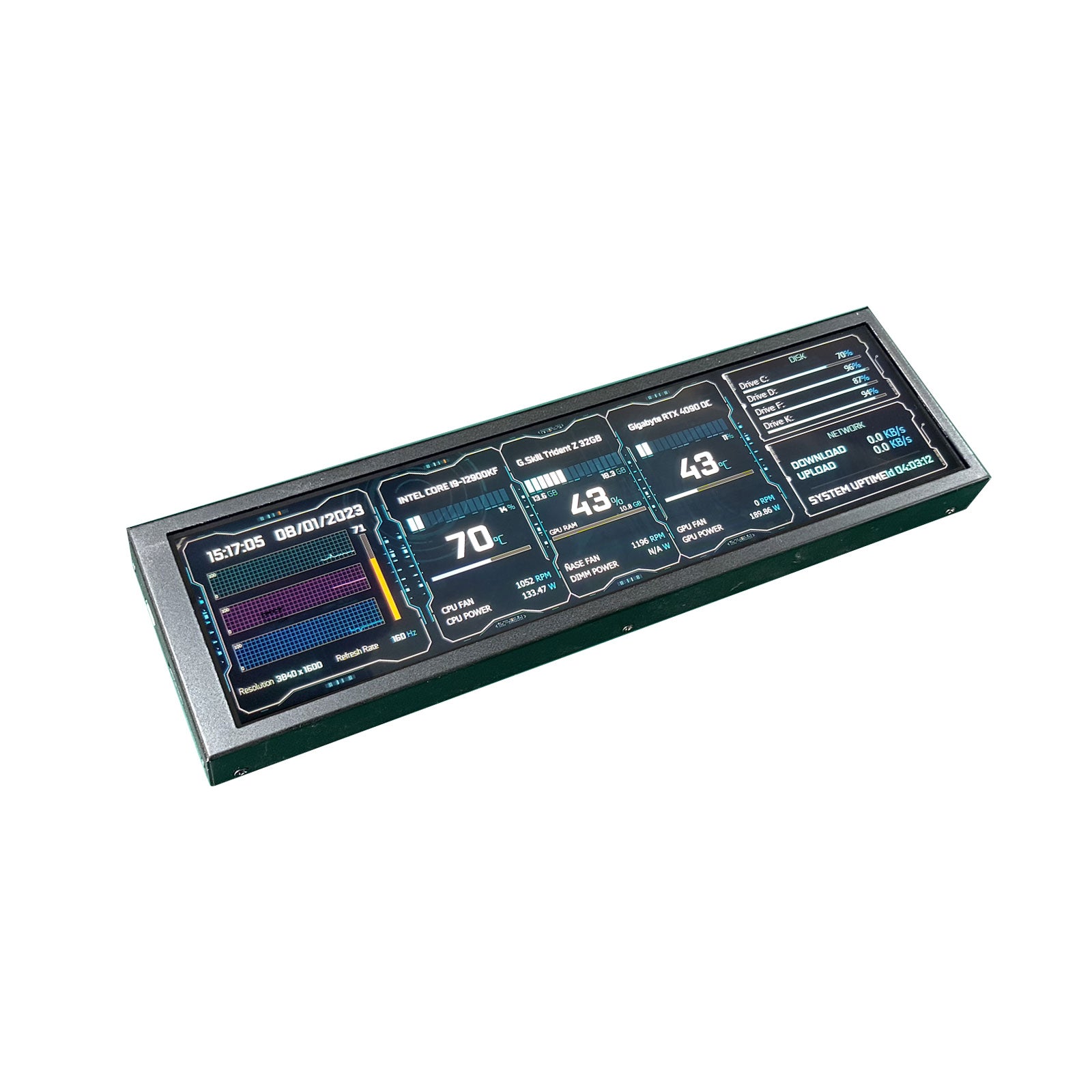 8.8" 1920x480 LCD Touch Screen Monitor Long Strip LCD Screen w/ Black Shell for AIDA64 CPU GPU SSD