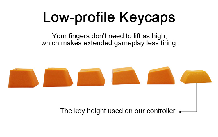 * PBT material for low-profile keycaps: Your fingers don't need to lift as high, which makes extended gameplay less tiring.