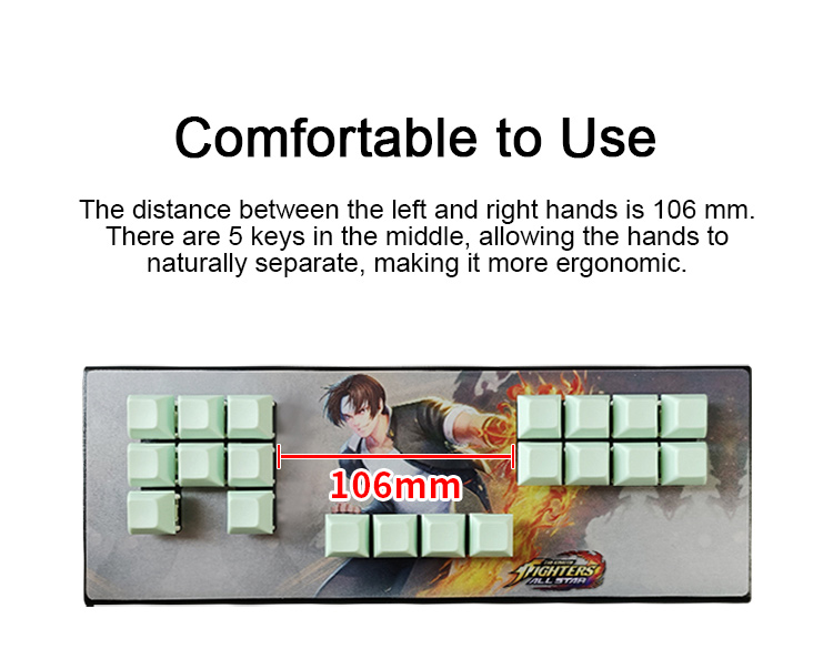 * Comfortable to Use: The distance between the left and right hands is 106 mm. There are 5 keys in the middle, allowing the hands to naturally separate, making it more ergonomic.