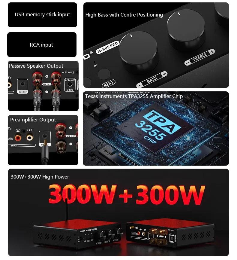 99E PRO Multifunctional 2.1 Digital Power Amplifier 300W+300W High Power USB Flash Drive Bluetooth5.2 HiFi Audio Amplifier