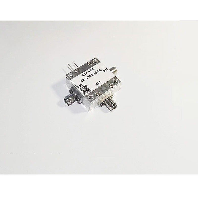 The microwave switch, also known as radio frequency switch, realizes the function of controlling the conversion of the microwave signal channel. This module adopts SPDT mode, broadband operation, frequency coverage 9K-13GHz, covering V, U, L, S, C, X bands. It can be used in typical frequency points: 433M, 486M, 915M, 1575M, 2.4G, 3.4GHz, 5.8G, 10G, 12G; especially in 5.8GHz, it has excellent parameter effects. This module realizes the switching of two signals. Because of its low insertion loss, wide frequency band, high isolation, and small size, it is widely used in communication system equipment. With CNC shell, the module has good electromagnetic shielding performance.