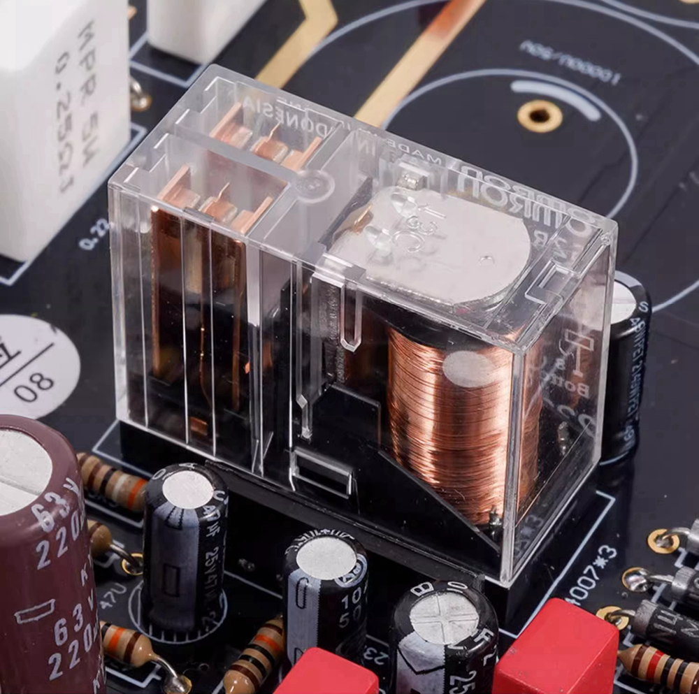 - The resistors of the circuit are 718 resistors. Japanese Omron is used for protection circuit. Input transistors are Japanese HIFI 2SC2240 and 2SA970. Driver is NJE15034/35 for ON