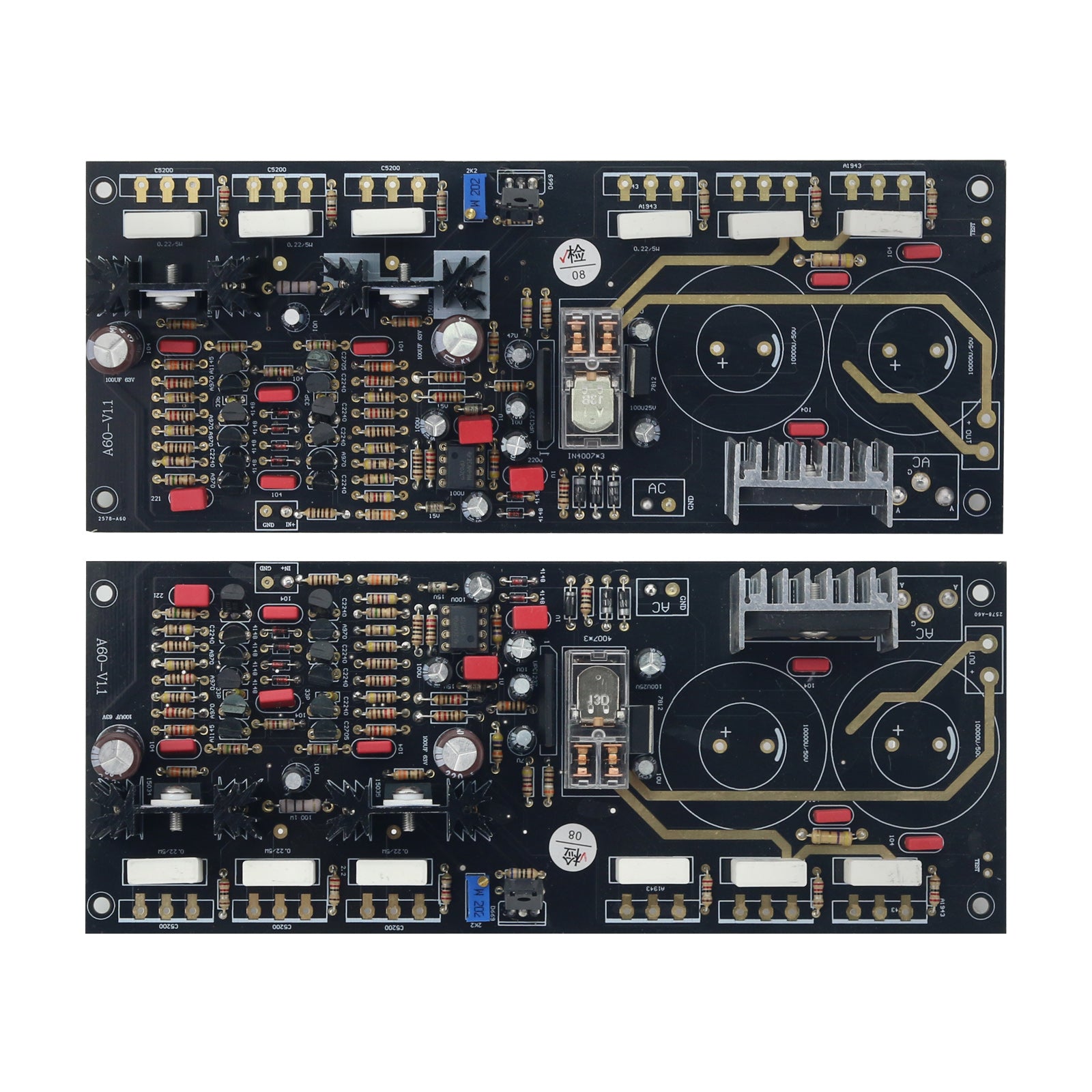 A60-V1.1 2x300W 2SC2240 2 Channel Amplifier Board Power Amp Board Refers to A60 for Accuphase