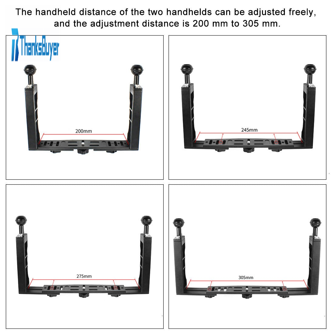Adjustable Handheld Grip Stabilizer Dual Handle Aluminum Alloy Holder For Diving Photography PU262