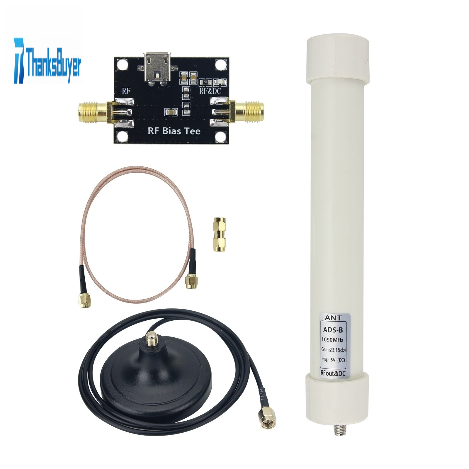 ADS-B 1090MHz White Active Antenna DC5V Bias Tee 23.15dBi High Gain RF Receiving Antenna with Pedestal