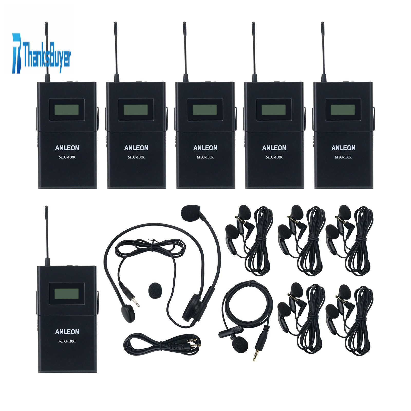ANLEON MTG-100 Wireless Acoustic Transmission System for Tour Guide and Simultaneous Translation (1 Transmitter + 5 Receivers)