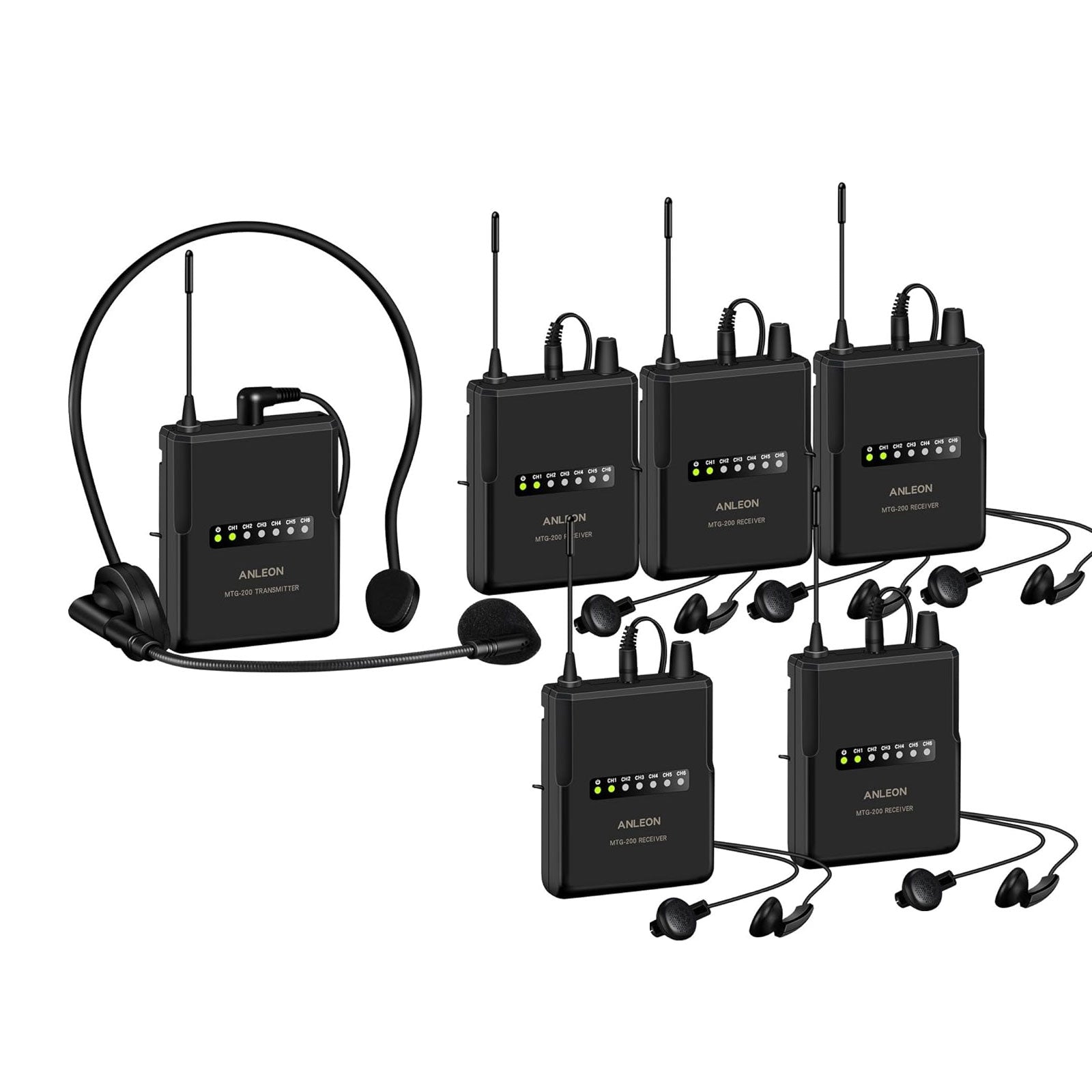 ANLEON MTG-200 Wireless Acoustic Transmission System for Tour Guide and Simultaneous Translation (1 Transmitter + 5 Receivers)