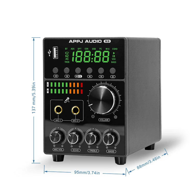 APPJ AUDIO S3 Bluetooth Karaoke HiFi Audio Power Amplifier LED Display 80W + 80W MA12070PI2S Chip for Infineon
