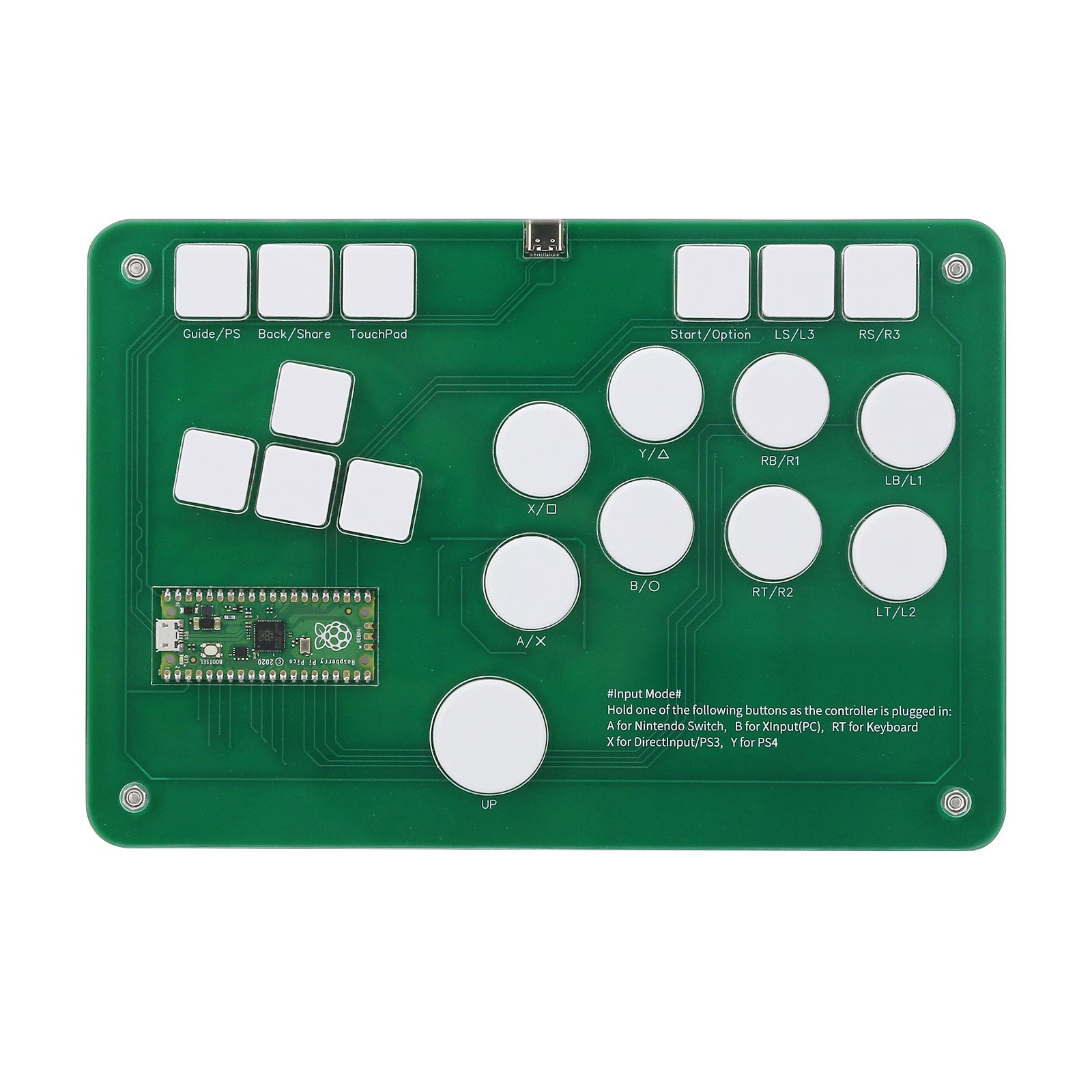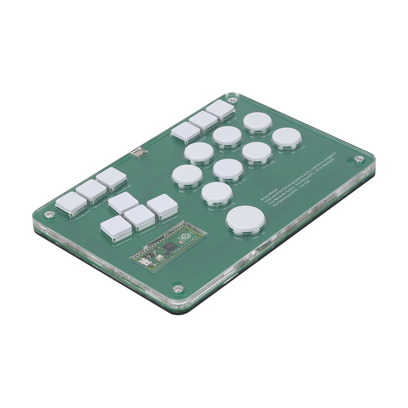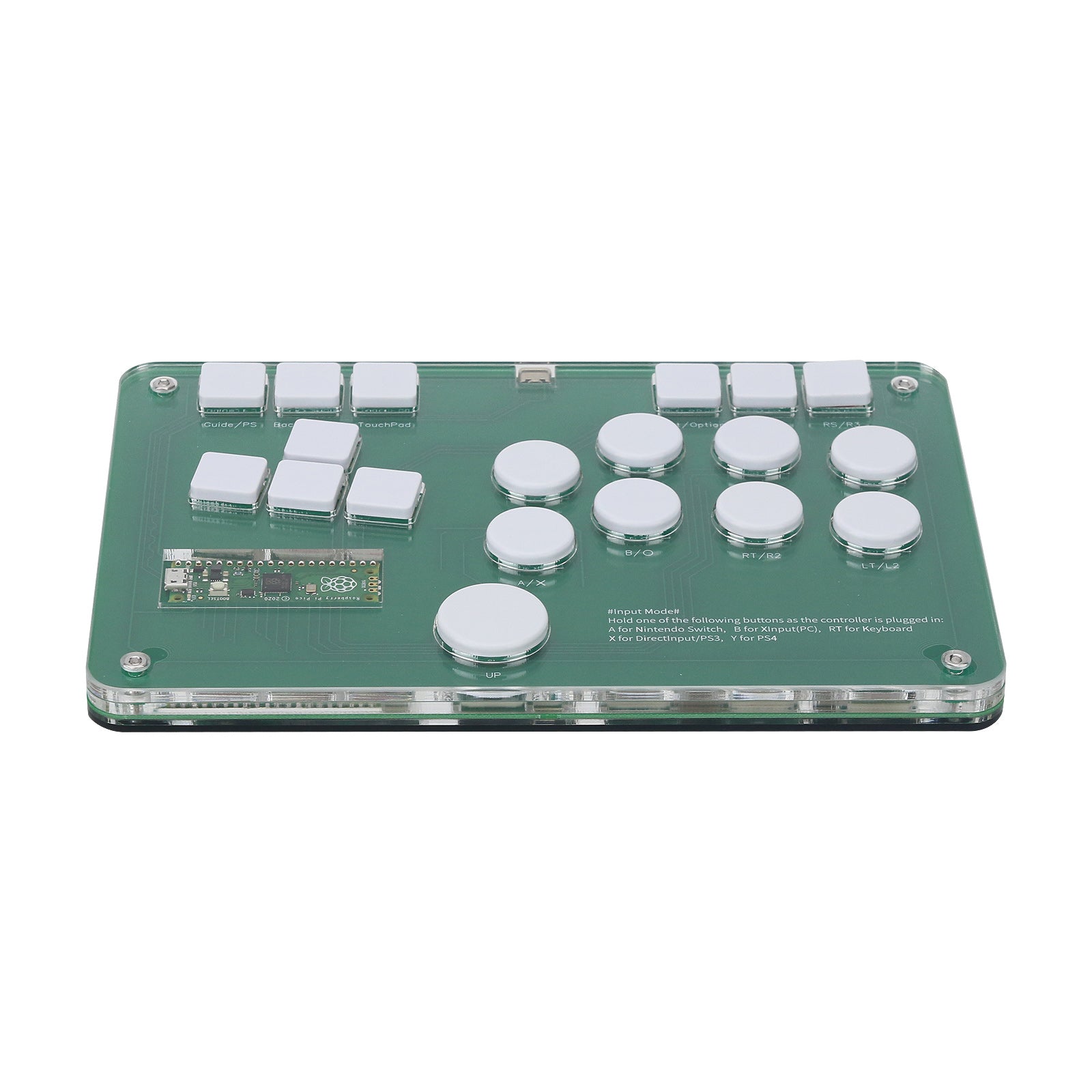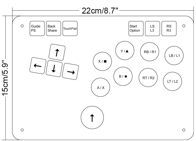 The design of the arcade controller is inspired by the WASD layout of traditional computer keyboards. 17mm/0.7" square key caps are used. Overall, it is somewhat similar to a laptop keyboard with mechanical switches. It is more suitable for users who are accustomed to computer keyboards (Note: The two ↑ buttons are bound, and their functions cannot be assigned separately).