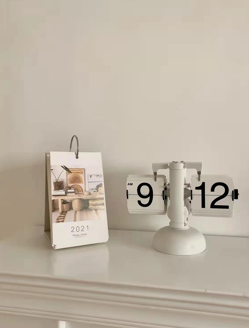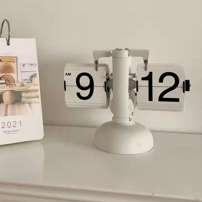 Automatic Flip Clock Desktop Digital Clock European Style Decoration Metal Stand White Spray Paint