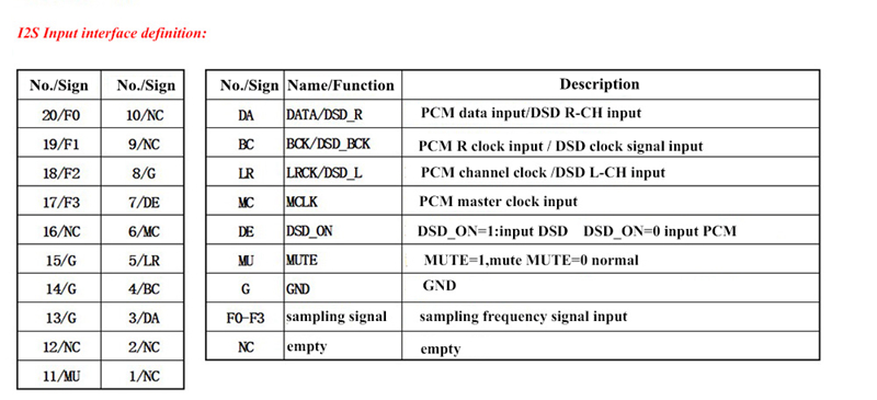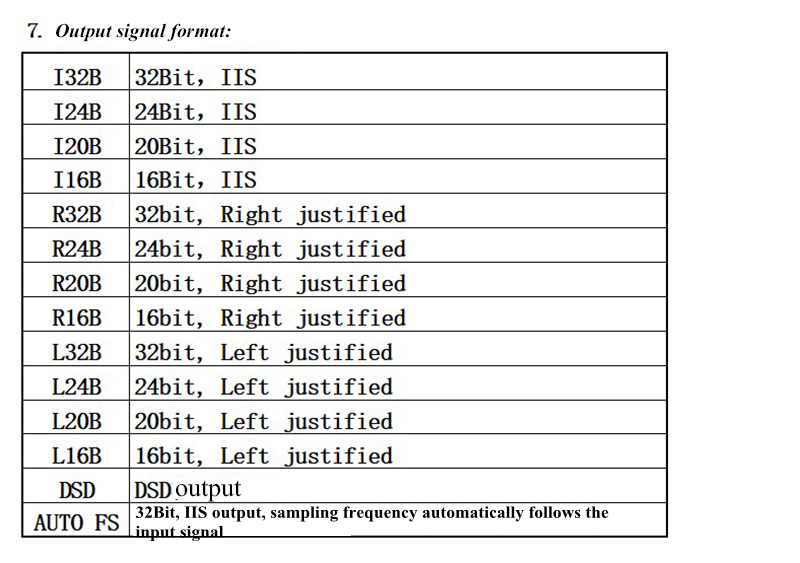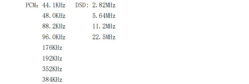- BNC RCA Optical, AES: 44.1K-192K 24BIT / DOP DSD64