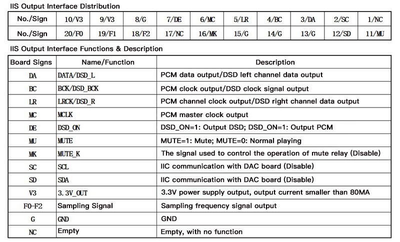 6. The dual-row 20-pin output interface is compatible with the output interface for Italian USB, and can be directly connected to decoder board such as DSC1