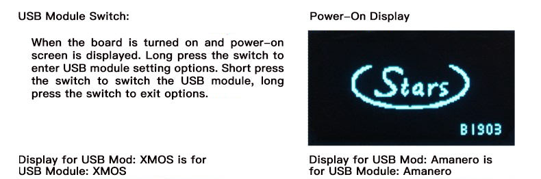 - USB (For XMOS module): 44.1K-384K 32BIT / DSD64, DSD128, DSD256 (Module for XMOS or Italian USB is not included, please purchase separately)