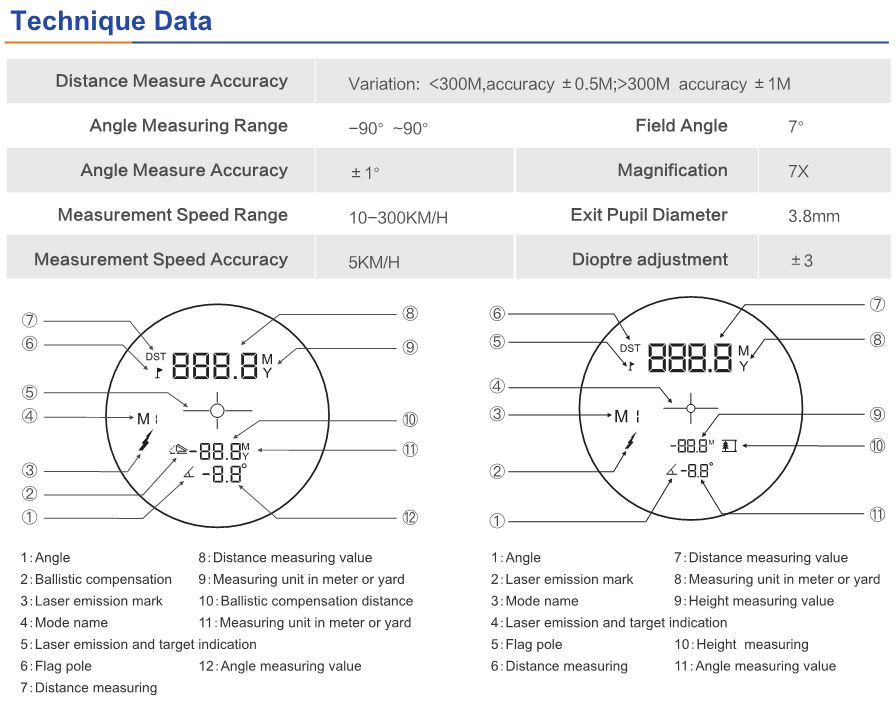 The Multifunction Laser Range Finder adopt a large-diameter multi-coated optical lens to ensure sufficient light transmission. Ranging of distance, speed, height, angle measurement, golf flagpole scanning, etc. to meet the needs of various fields. The body is made of anti-slip, solid material, beautiful design, with waterproof, non-slip and dustproof, the three-proof structure. The product is small and convenient, and can be held in one hand. Laser rangefinder is widely used in topographic survey, industrial measurement and control, mining, hunting, golf, port and other fields.