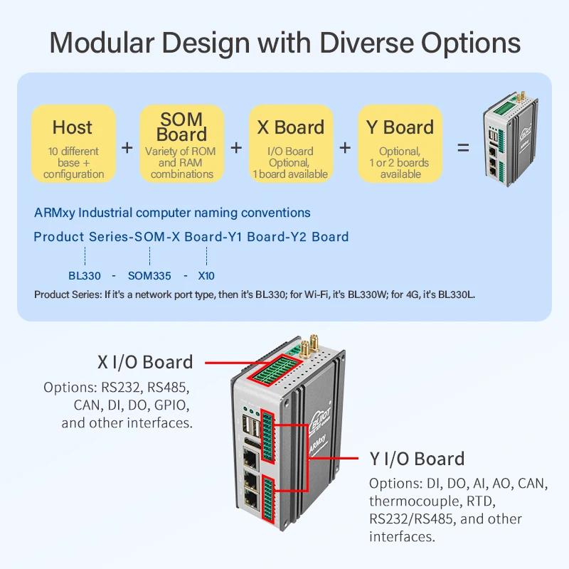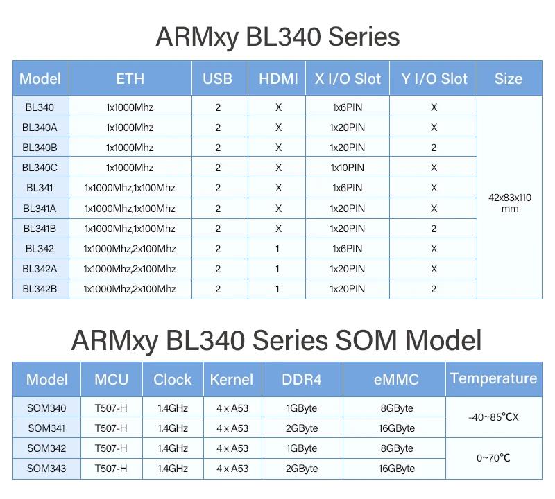 - It is a versatile industrial ARM controller designed for flexible I/O configuration. The BL340 series is an industrial-grade controller designed based on the T507-H processor for Allwinner Technology, featuring a quad-core ARM Cortex-A53 CPU with a clock speed of up to 1.4GHz. It is equipped with 16GB eMMC and 2GB DDR4, suitable for a wide range of applications.