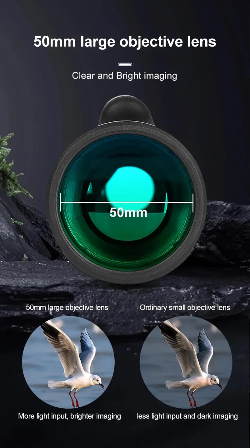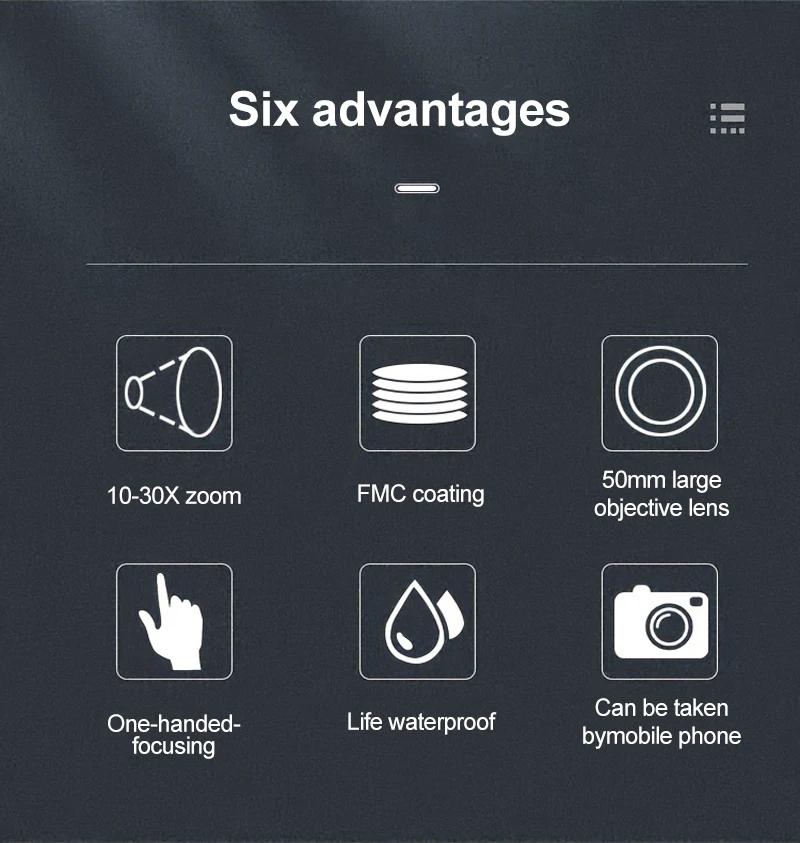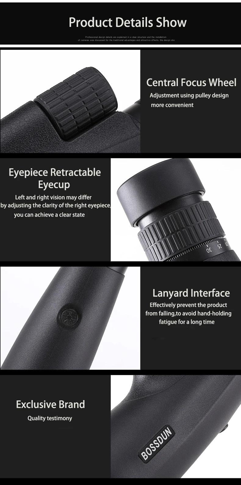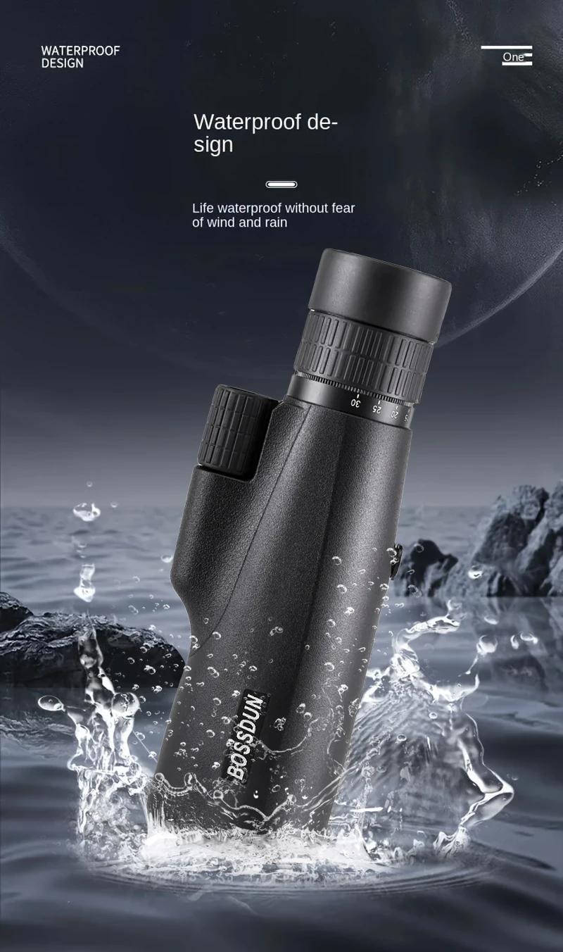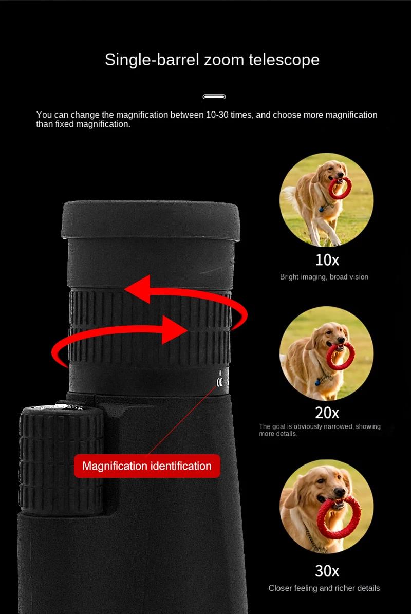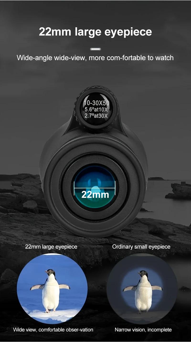 Black DT0035 10-30X Zoom HD Monocular Telescope 22mm Eyepiece 50mm Objective Lens IP56 Waterproof and Dustproof