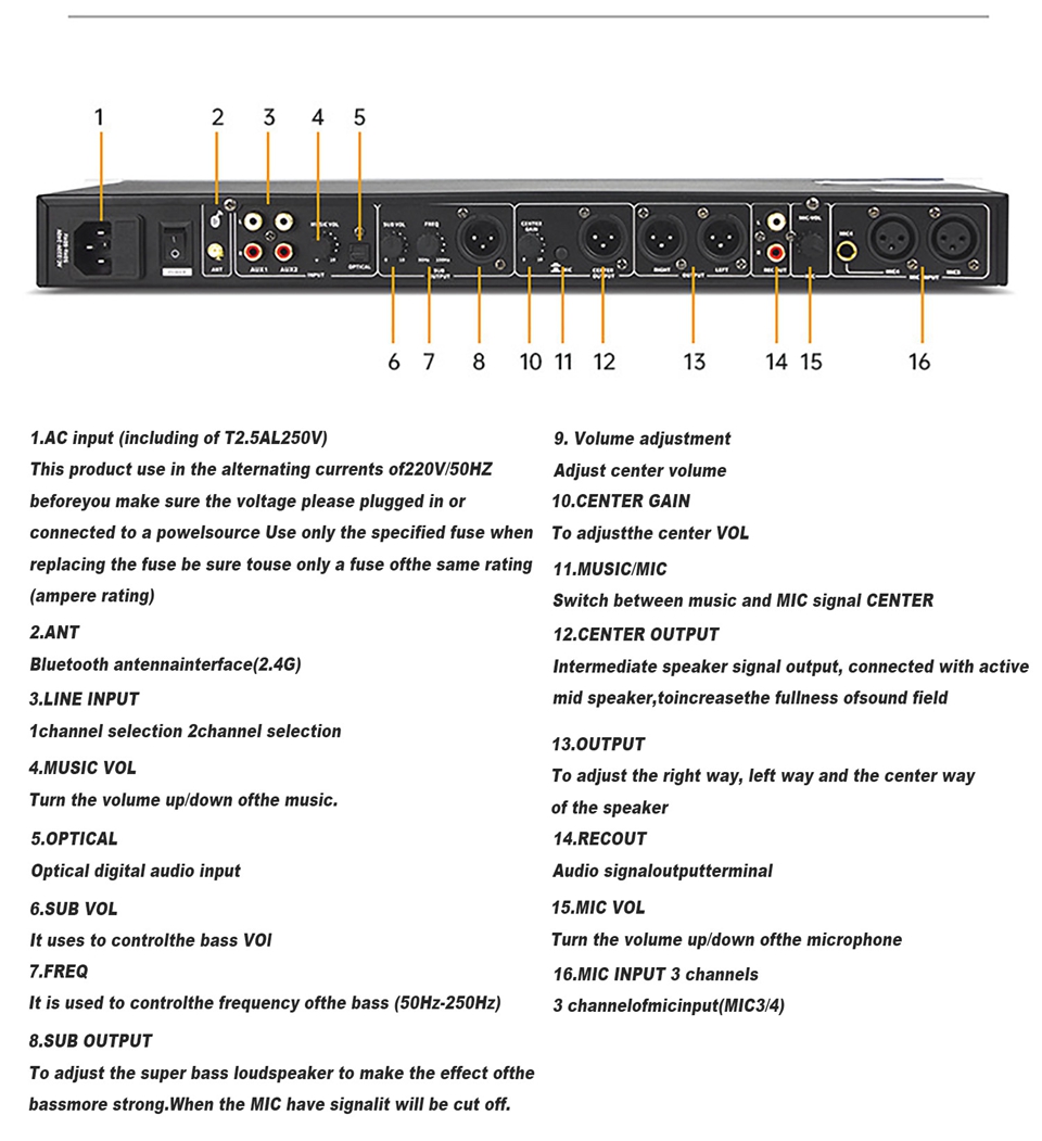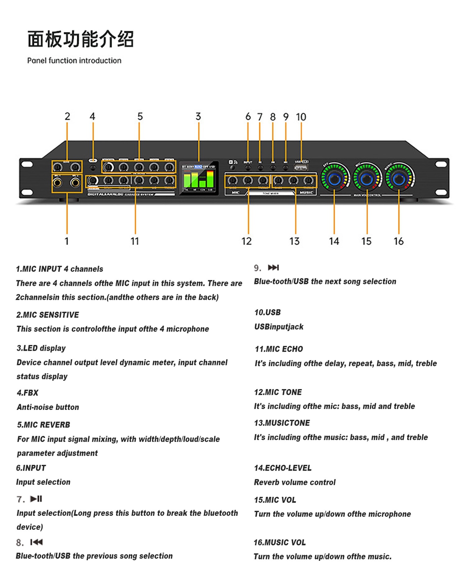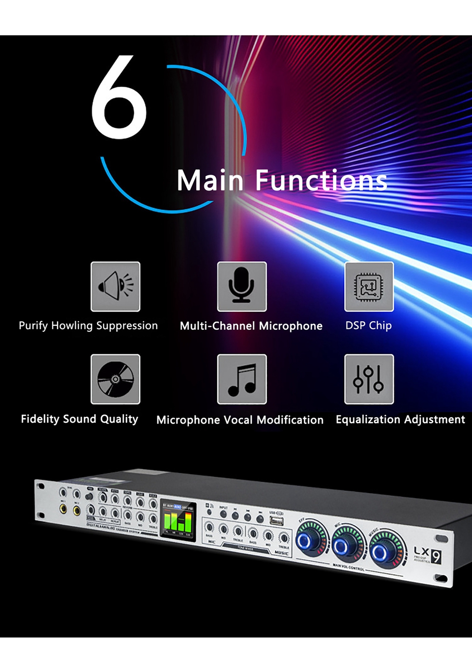 Black GAX-LX9 Professional Digital Preamplifier Multi-channel Microphone Double Reverb DSP Karaoke Effects Processor