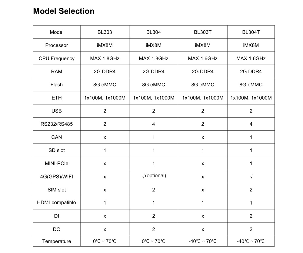 - BL304 series Embedded Computer are widely applicable to IoT, Industrial IoT, digital factories, industrial automation, energy monitoring, smart security, rail transit, telecommunications, smart EV charging, human-computer interaction and other fields.