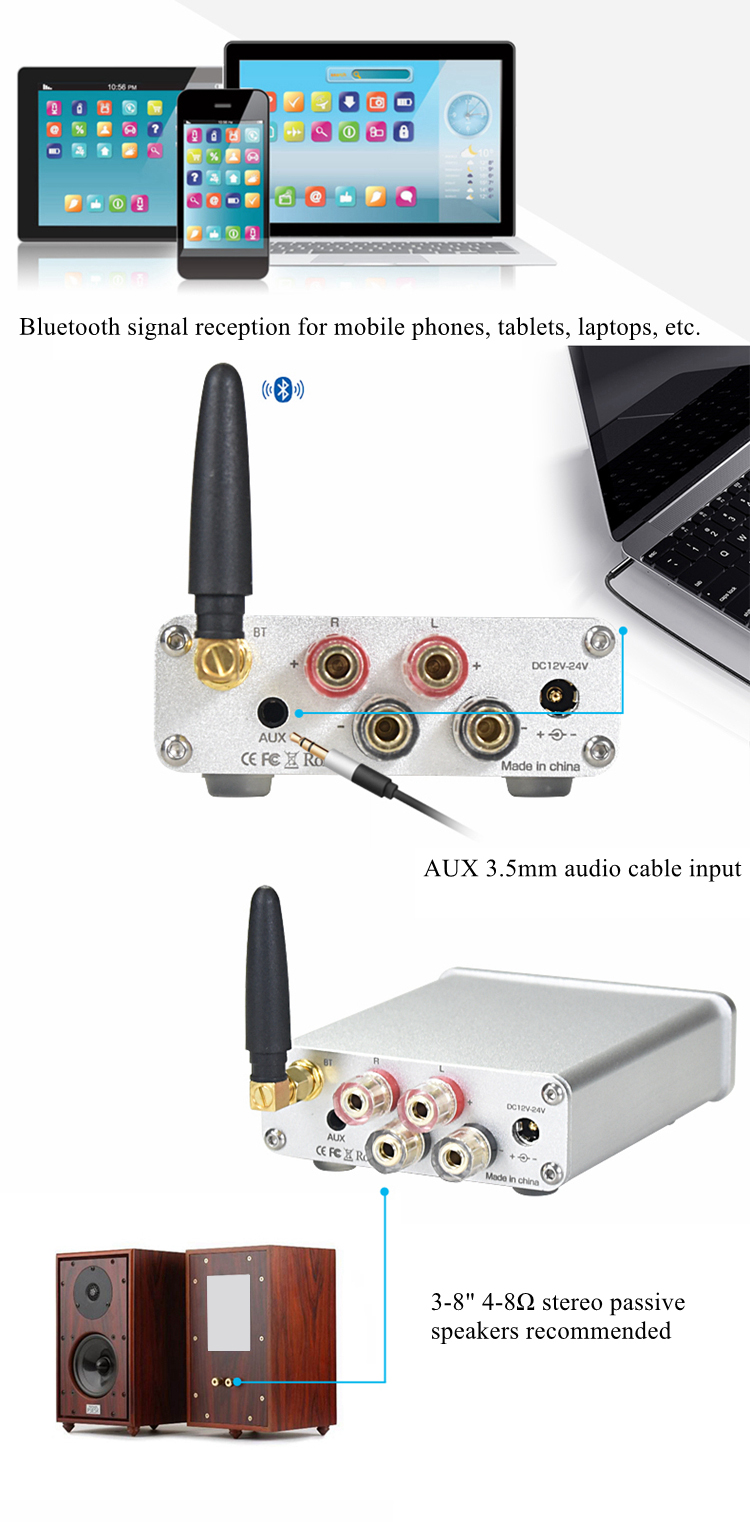 - Recommended match: 3-8" stereo passive speakers