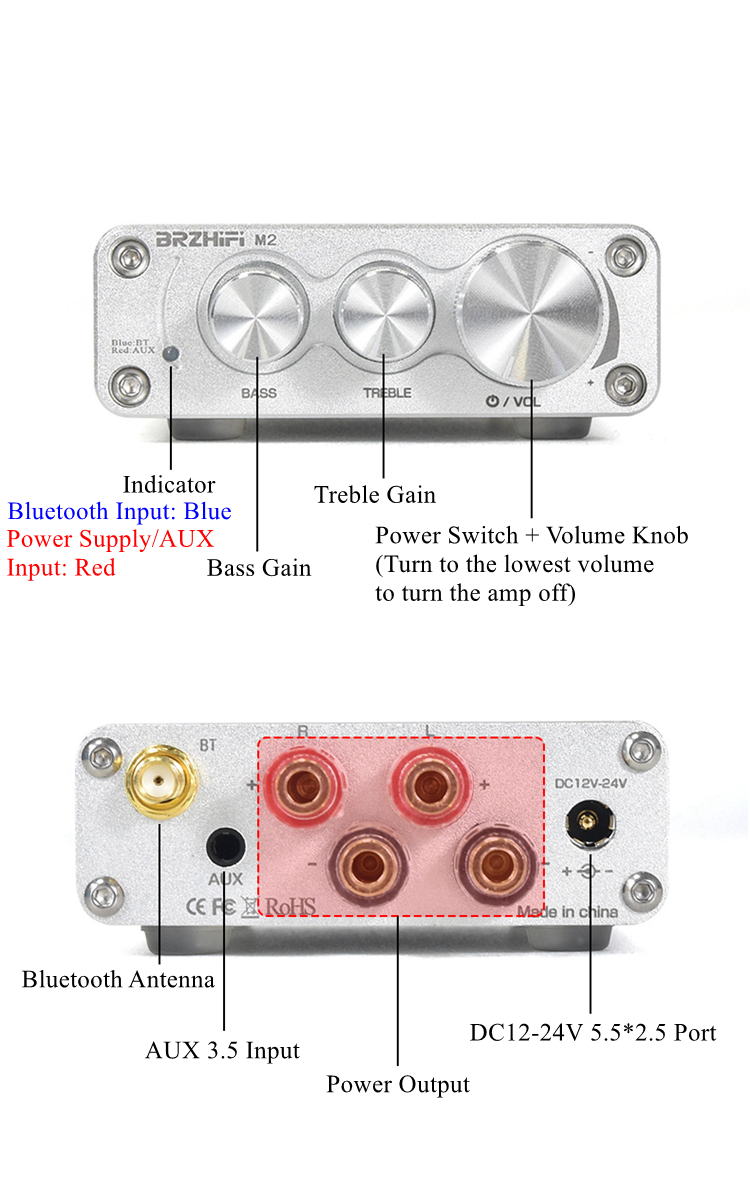 BRZHIFI M2 Small Amplifier BT 5.0 Subwoofer Amplifier 80W+80W Power Amp With Cigarette Lighter Cable