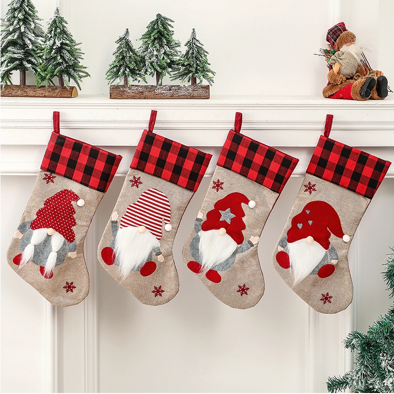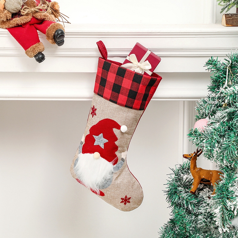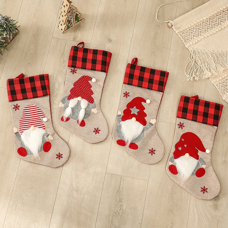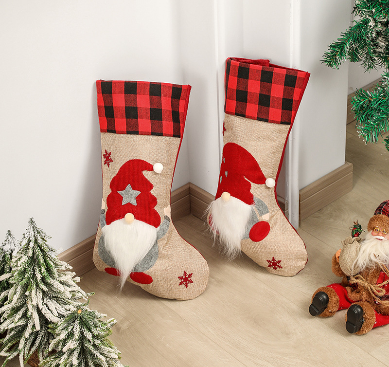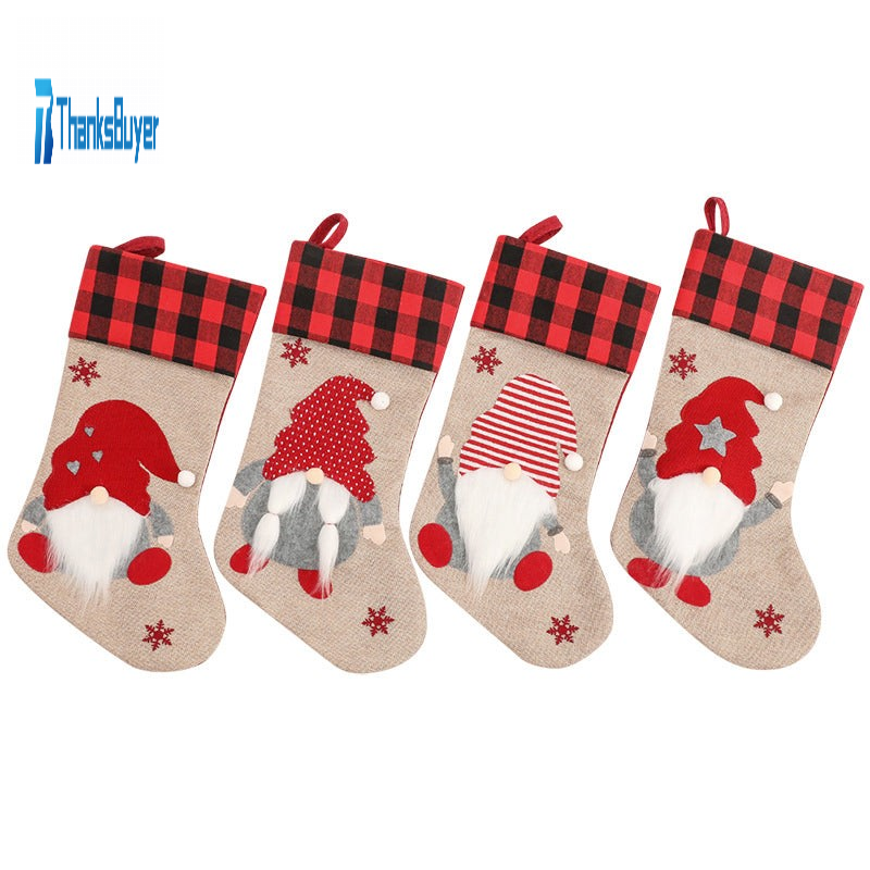 Christmas Stocking Christmas Ornament Nordic Style Xmas Gift Designed With Faceless Elderly Man