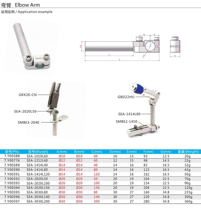 CRG SEA-1010L60[7.Y00388] Mechanical Elbow Arm Universal Robot Arm Joint Gripper Accessory for Fixing Stand Connection