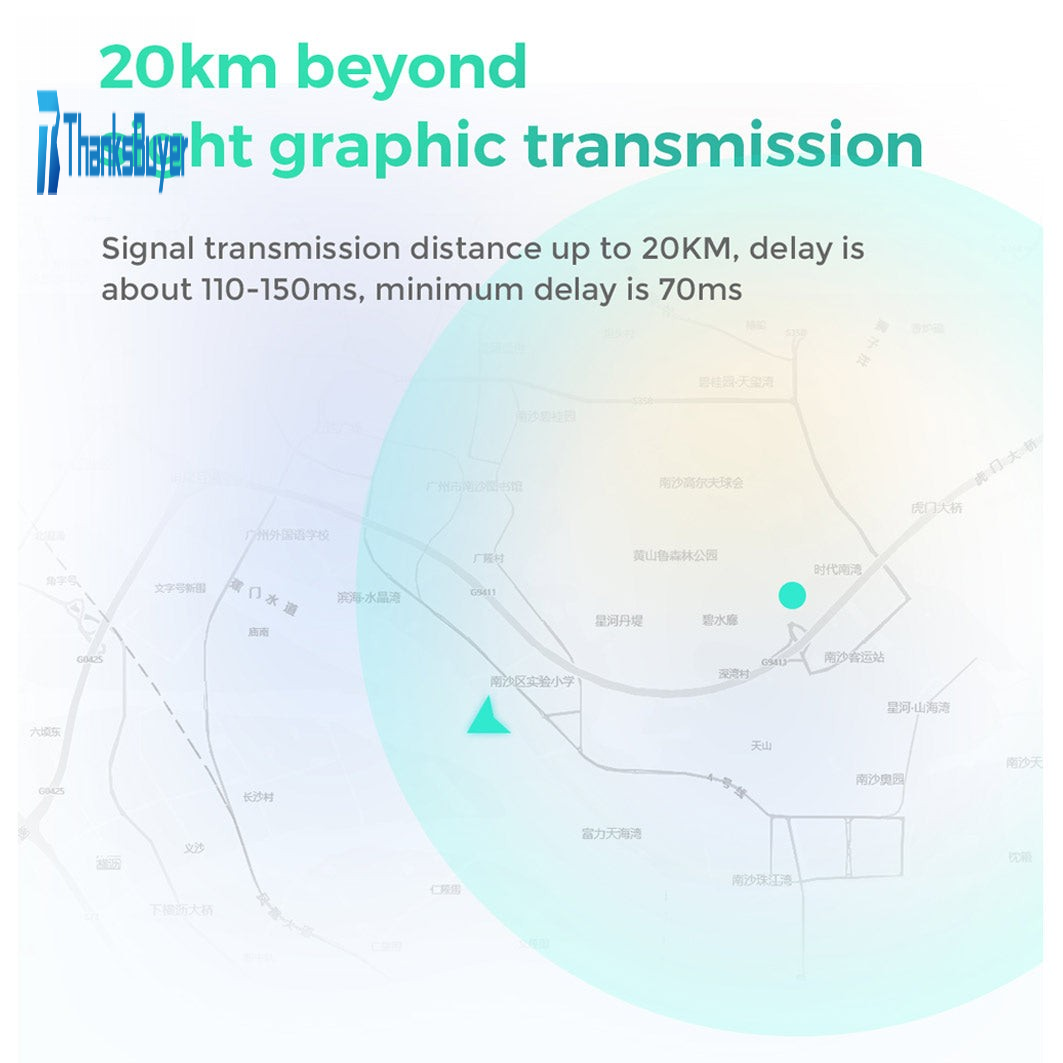 - 20KM Image Transmission: Signal transmission distance is up to 20KM, the delay is about 110-150ms, and the minimum delay is 70ms.