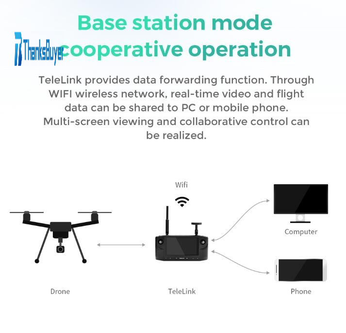 - Base Station Mode Enabling Cooperative Operation: It provides data forwarding function. Through WiFi wireless network, real-time video and flight data can be shared to a PC or mobile phone, which can realize multi-screen viewing and collaborative control.