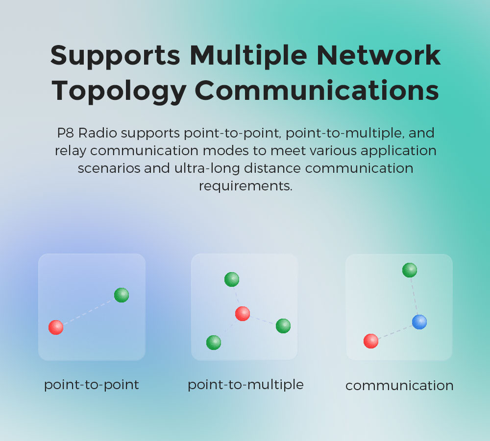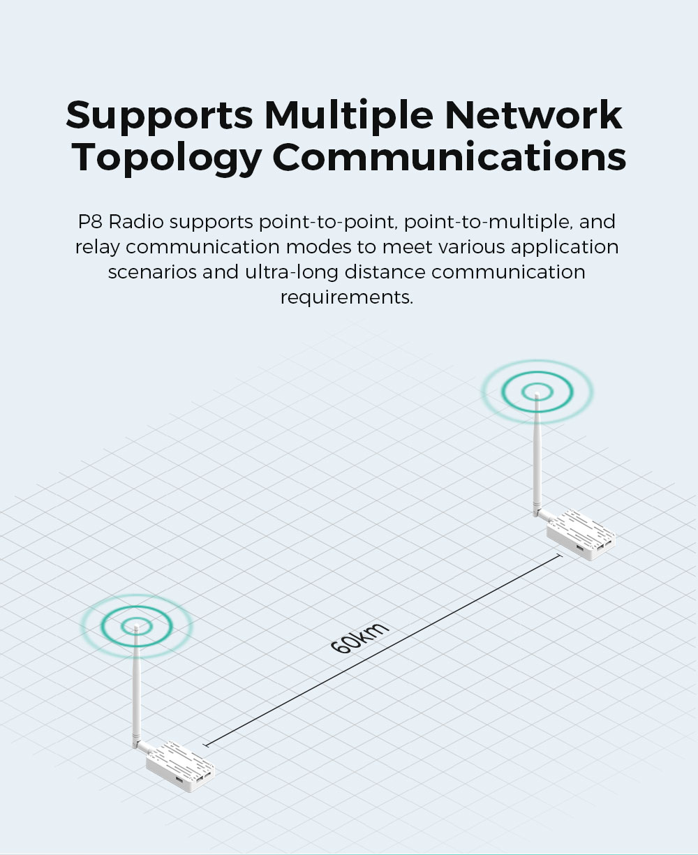 - Working mode: point-to-point, point-to-multipoint, relay mode