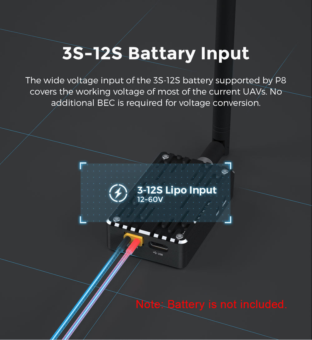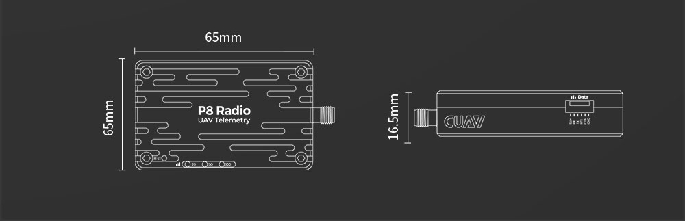 - Weight: P8 module 55g / 0.12 lb, antenna 31g / 0.07 lb