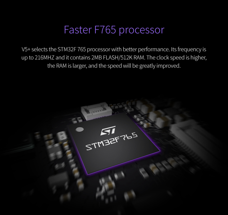- Main FMU Processor: STM32F765 (32 Bit Arm Cortex-M7, 216MHz, 2MB Flash, 512KB RAM)