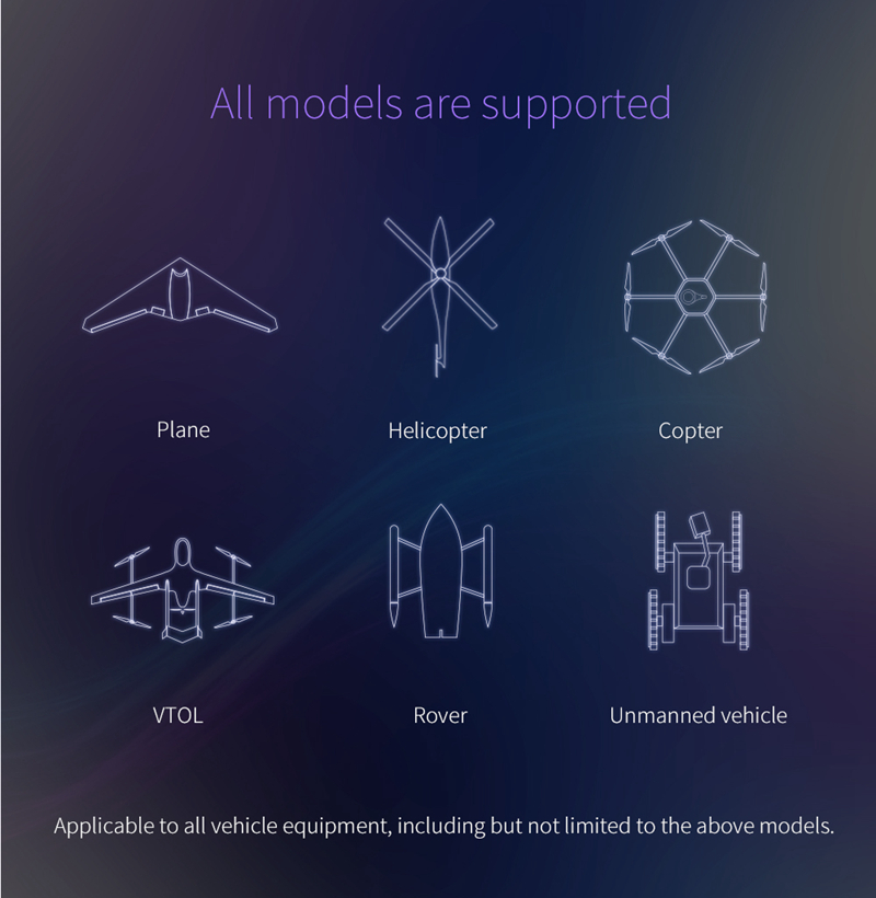 - Drone Models: For multi-rotor, fixed wing drones, helicopters, VTOL, unmanned boats, unmanned vehicles, etc.