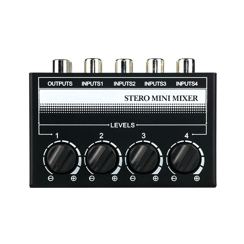 CX400 Stereo Mini Audio Mixer 4-Channel RCA Input and 1-Channel Output with Passive Circuit Design