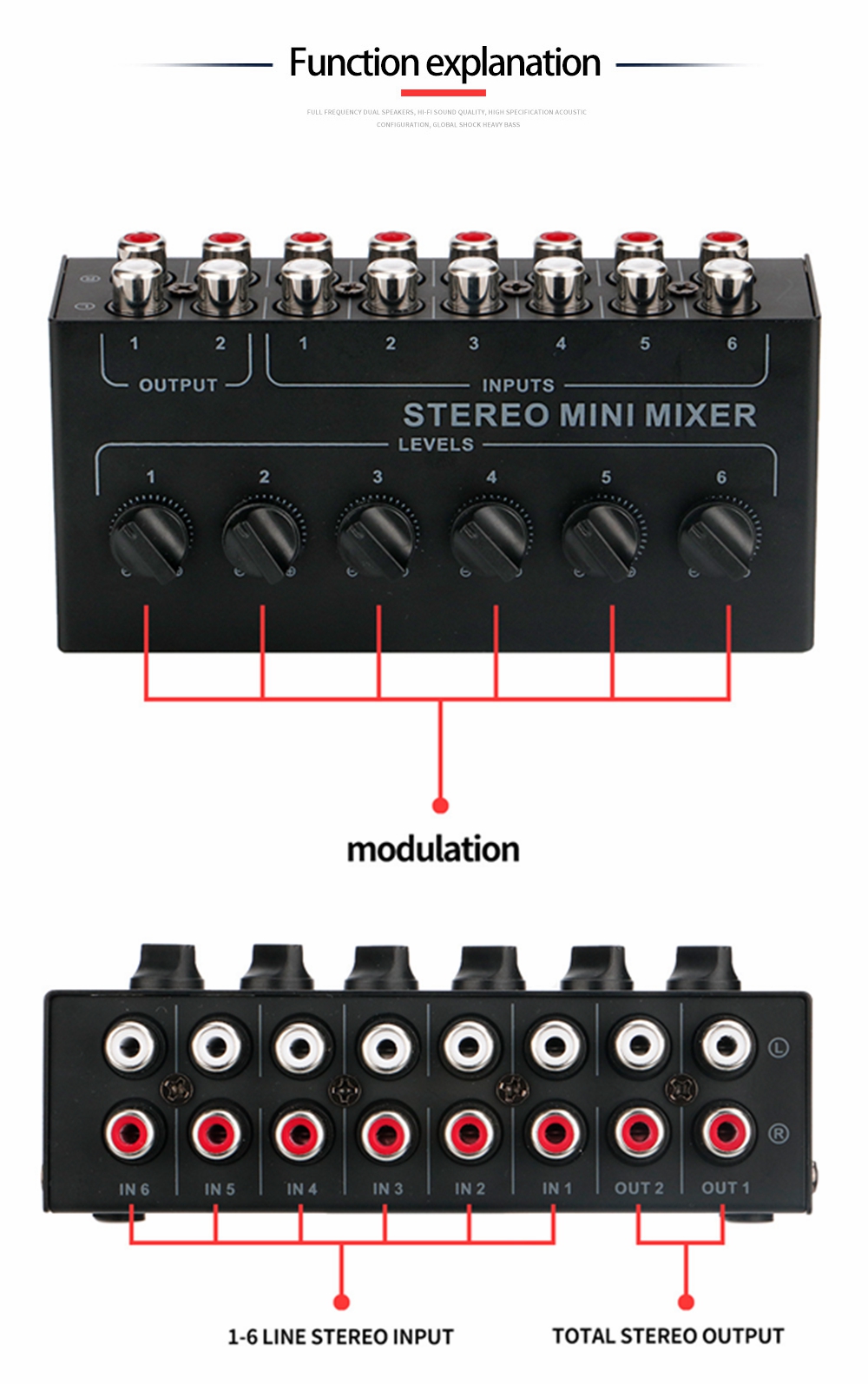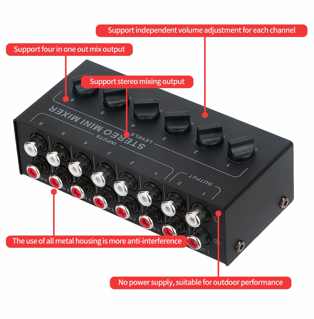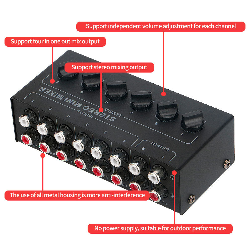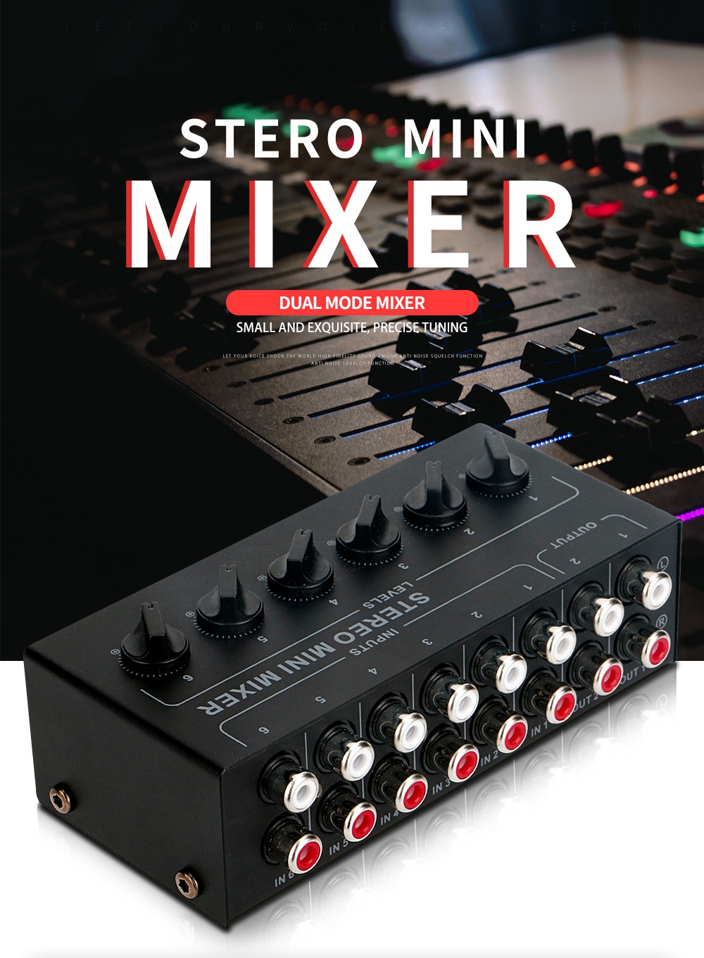 CX600 Stereo Mini Audio Mixer Dual Mode 6-Channel Input and 2-Channel Output with Independent Volume Adjustment