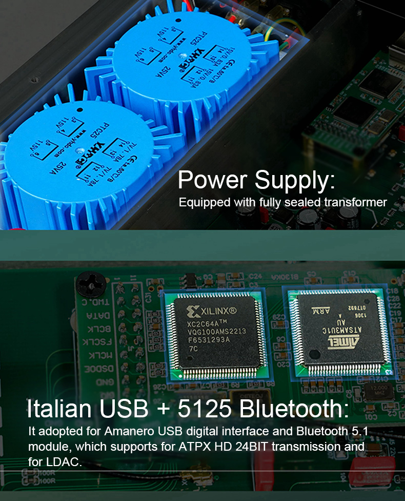 - The power input is 115V/ 230V AC, and a double 25-watt customized transformer is used inside to supply power to the digital circuit and the analog circuit respectively;
