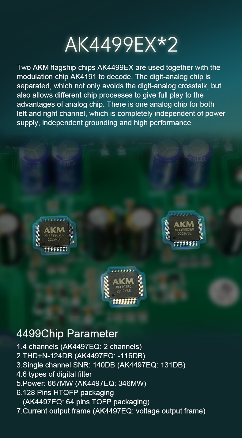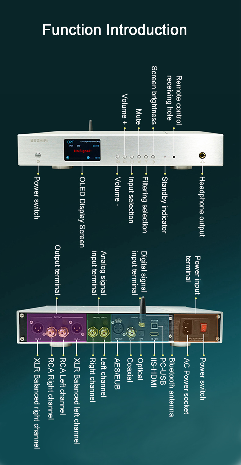 - Dynamic range: 127DB for RCA single-ended line; 133DB for XLR balanced line