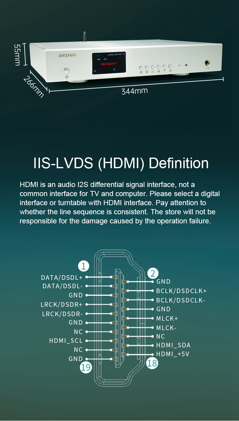 - I2S input is LVDS level in the form of HDMI interface, compatible with most front-end equipment.