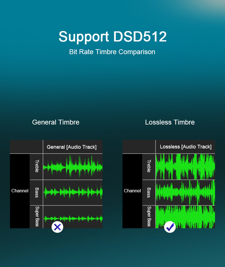 - DSD: 2.8 MHZ (DSD64) - DOP NATIVE