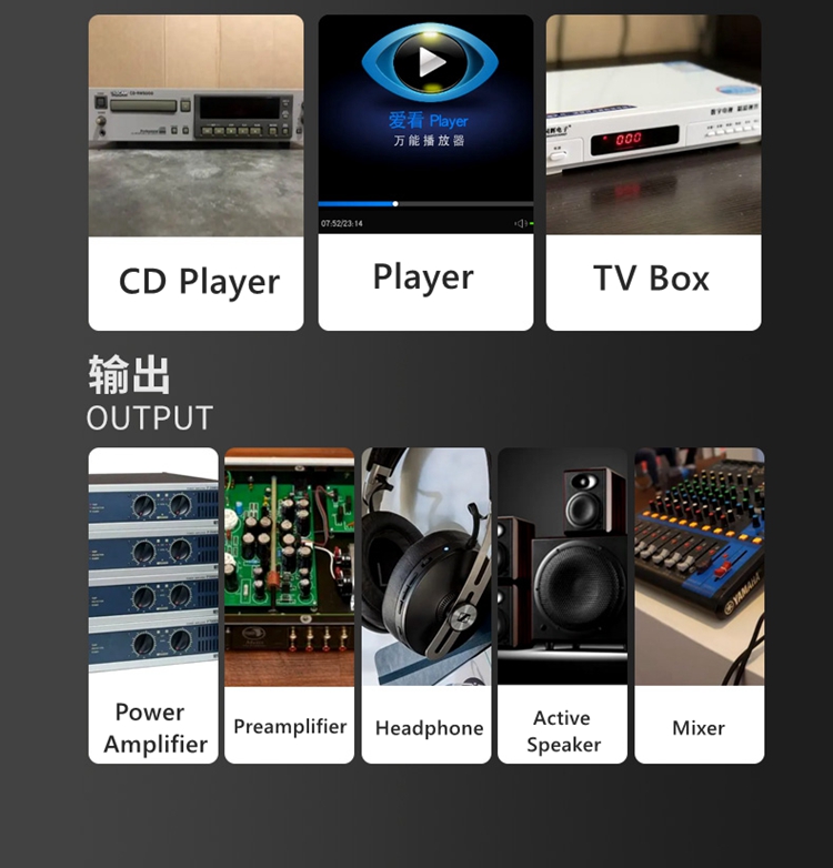 - Output interface: XLR / RCA Single-end / 6.35 Headphone