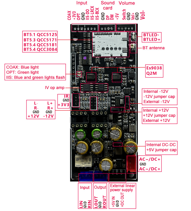 - Optical fiber, coaxial and IIS inputs (an expansion board should be added for USB drive function)
