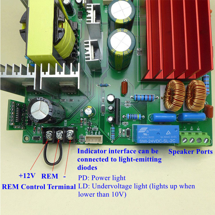 It features DC 12V input, self-contained boost circuit, and relay delay speaker protection circuit, providing ±15V power supply for preamplifier. It boasts power amplifier chip TDA8954 dual-channel 2*220W (4 ohms) and BTL (8 ohms) 420W.